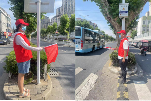 志愿者們不畏酷暑,依次輪流值守,身穿“志愿紅”馬甲、手持“禮讓斑馬線引導(dǎo)旗”,以熱情飽滿的姿態(tài)在紅旗中路—紅星中學(xué)東校區(qū)道路兩側(cè)路口引導(dǎo)機動車禮讓行人。